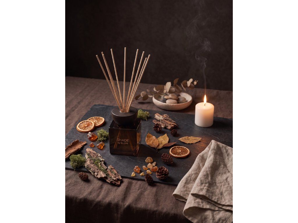Proč si vůni SHADE zamilujete? Srdcem difuzéru je sofistikovaná kompozice. Hned při prvním přičichnutí vás osloví jiskřivý úvod bergamotu, citronu a křišťálově čistých akvatických tónů. Střed vůně odhaluje sametově hřejivé srdce z cedrového dřeva, kašmíru a jemných fialково-kosatcových akordů, které kompozici dodávají hloubku a rafinovanost. Celý zážitek uzavírá hladký základ bílého pižma, pačuli a teplého ambrového dřeva, jenž v prostoru zanechává příjemnou, dlouhotrvající stopu.